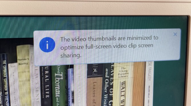 The message in the photo above told me that when I clicked ‘Optimize for video’ – a recommended action, via the host’s menu, to ensure good sound quality – I would also get a change to the way the screen appeared. (Note: If you want your host to be borderline paranoid-obsessive about sound quality, get a deaf host!). It being Zoom, this was not stated directly or particularly clearly, but I knew I was on to something.