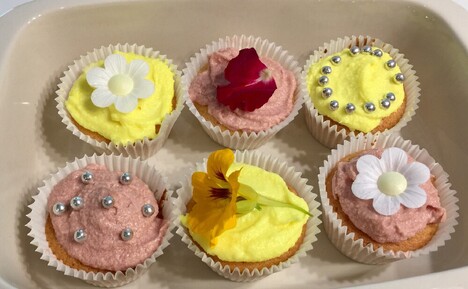**The yellow flower on the cake is a nasturtium (they are edible) - the triumphant result of conquering the black flies and healthy new flowers appearing*
